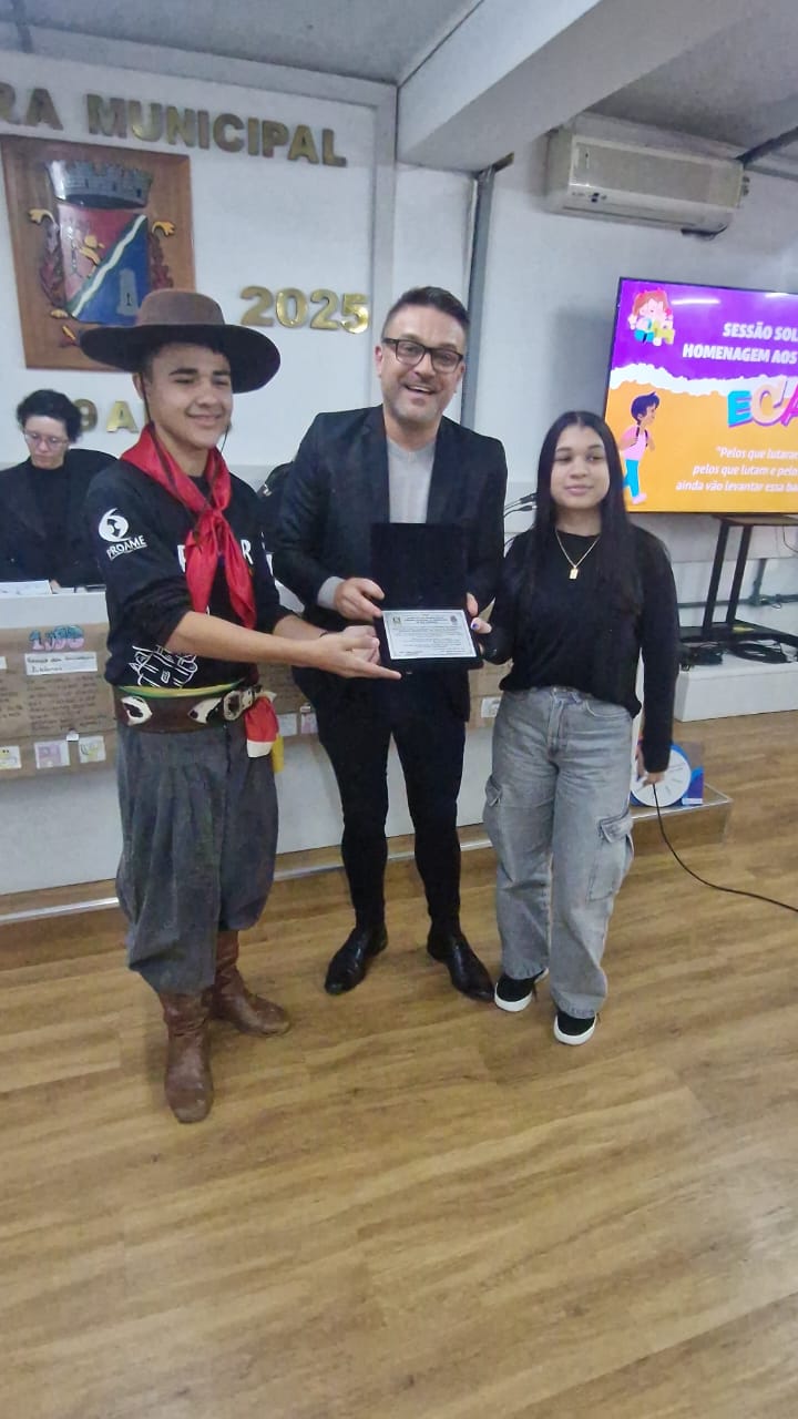 35 ANOS DO ECA: Câmara de Vereadores de São Leopoldo homenageia Breno Oliveira e Carol Ribeiro, do Proame/Cedeca